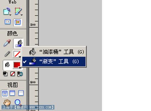 我们继续讲解,现在我们来画上部菜单部分的内容,其实很简单拉,就是画一个方框,一个圆,然后组合,加上渐变就可以了,如下图设置